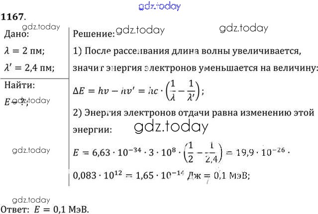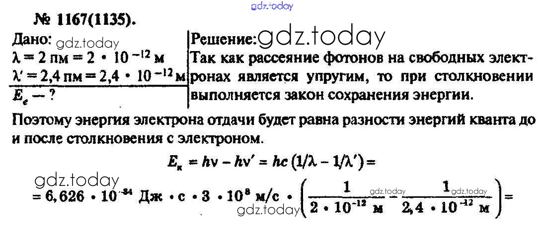 На страницах сайта gdz.today вы найдете учебный и вспомогательный материал, направленный на улучшения знаний школьной программы. ГДЗ - онлайн мир знаний Задачи 1167 Задачнику по Физике для 10-11 класса Рымкевич Дрофа УМК 2013
