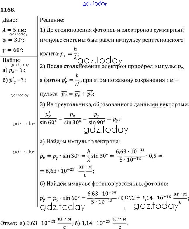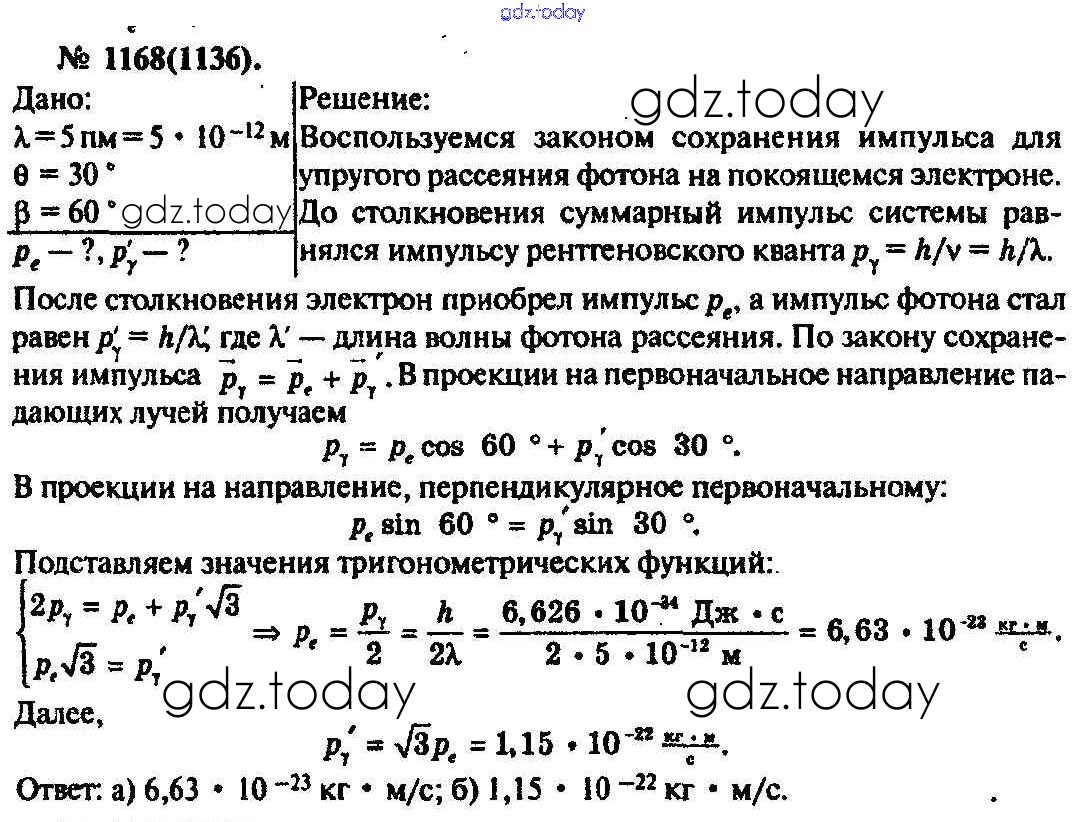 На страницах сайта gdz.today вы найдете учебный и вспомогательный материал, направленный на улучшения знаний школьной программы. ГДЗ - онлайн мир знаний Задачи 1168 Задачнику по Физике для 10-11 класса Рымкевич Дрофа УМК 2013