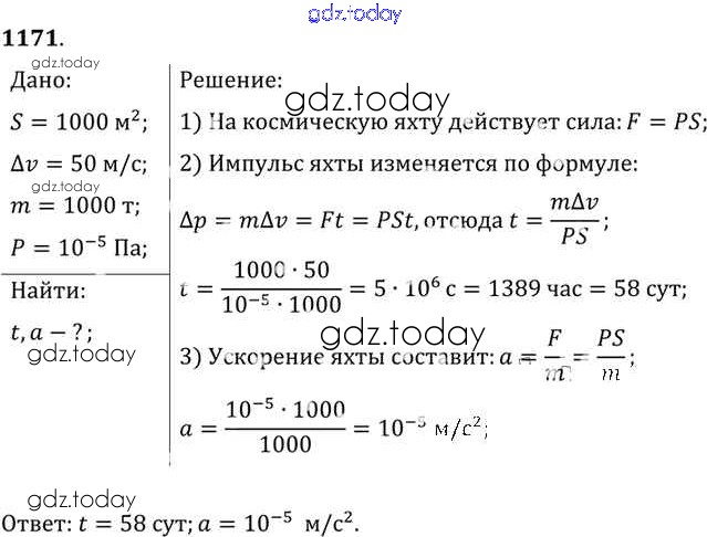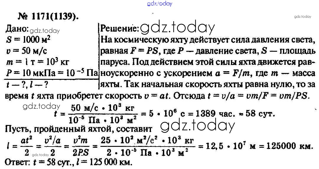 На страницах сайта gdz.today вы найдете учебный и вспомогательный материал, направленный на улучшения знаний школьной программы. ГДЗ - онлайн мир знаний Задачи 1171 Задачнику по Физике для 10-11 класса Рымкевич Дрофа УМК 2013