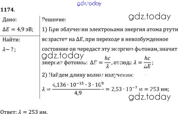 На страницах сайта gdz.today вы найдете учебный и вспомогательный материал, направленный на улучшения знаний школьной программы. ГДЗ - онлайн мир знаний Задачи 1174 Задачнику по Физике для 10-11 класса Рымкевич Дрофа УМК 2013