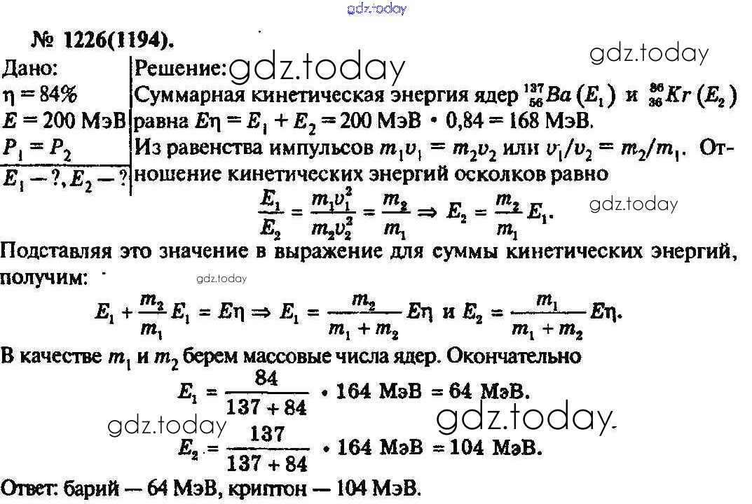 На страницах сайта gdz.today вы найдете учебный и вспомогательный материал, направленный на улучшения знаний школьной программы. ГДЗ - онлайн мир знаний Задачи 1226 Задачнику по Физике для 10-11 класса Рымкевич Дрофа УМК 2013