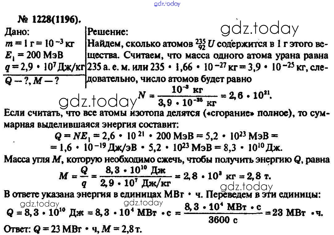 На страницах сайта gdz.today вы найдете учебный и вспомогательный материал, направленный на улучшения знаний школьной программы. ГДЗ - онлайн мир знаний Задачи 1228 Задачнику по Физике для 10-11 класса Рымкевич Дрофа УМК 2013
