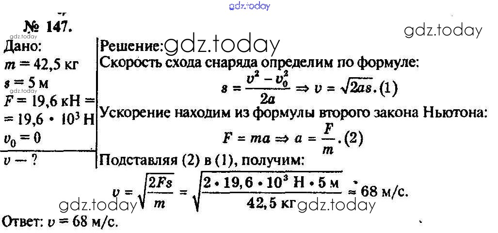 На страницах сайта gdz.today вы найдете учебный и вспомогательный материал, направленный на улучшения знаний школьной программы. ГДЗ - онлайн мир знаний Задачи 147 Задачнику по Физике для 10-11 класса Рымкевич Дрофа УМК 2013