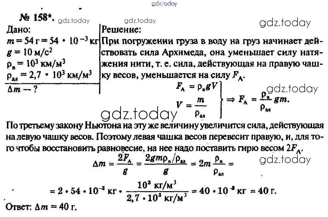 На страницах сайта gdz.today вы найдете учебный и вспомогательный материал, направленный на улучшения знаний школьной программы. ГДЗ - онлайн мир знаний Задачи 158 Задачнику по Физике для 10-11 класса Рымкевич Дрофа УМК 2013