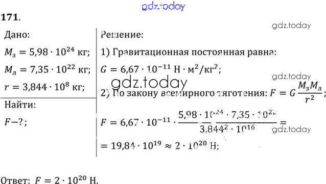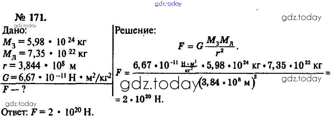 На страницах сайта gdz.today вы найдете учебный и вспомогательный материал, направленный на улучшения знаний школьной программы. ГДЗ - онлайн мир знаний Задачи 171 Задачнику по Физике для 10-11 класса Рымкевич Дрофа УМК 2013
