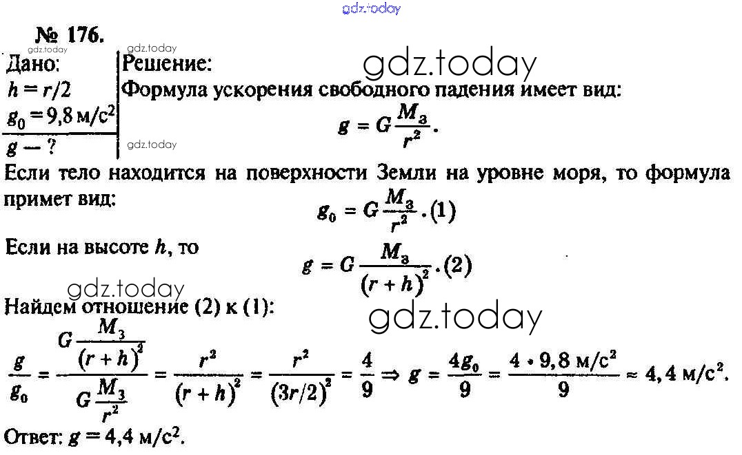 На страницах сайта gdz.today вы найдете учебный и вспомогательный материал, направленный на улучшения знаний школьной программы. ГДЗ - онлайн мир знаний Задачи 176 Задачнику по Физике для 10-11 класса Рымкевич Дрофа УМК 2013