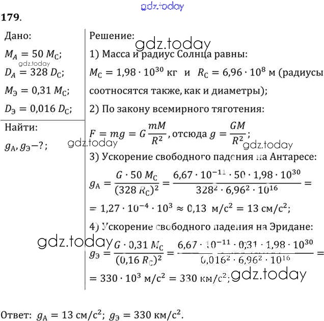 На страницах сайта gdz.today вы найдете учебный и вспомогательный материал, направленный на улучшения знаний школьной программы. ГДЗ - онлайн мир знаний Задачи 179 Задачнику по Физике для 10-11 класса Рымкевич Дрофа УМК 2013