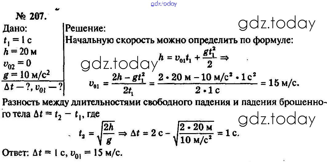 На страницах сайта gdz.today вы найдете учебный и вспомогательный материал, направленный на улучшения знаний школьной программы. ГДЗ - онлайн мир знаний Задачи 207 Задачнику по Физике для 10-11 класса Рымкевич Дрофа УМК 2013