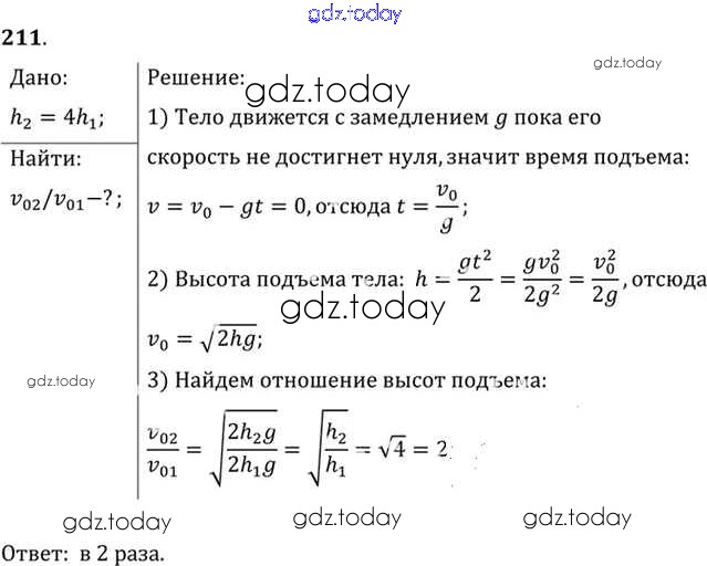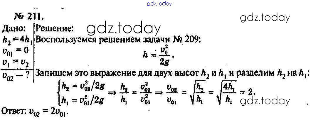 На страницах сайта gdz.today вы найдете учебный и вспомогательный материал, направленный на улучшения знаний школьной программы. ГДЗ - онлайн мир знаний Задачи 211 Задачнику по Физике для 10-11 класса Рымкевич Дрофа УМК 2013