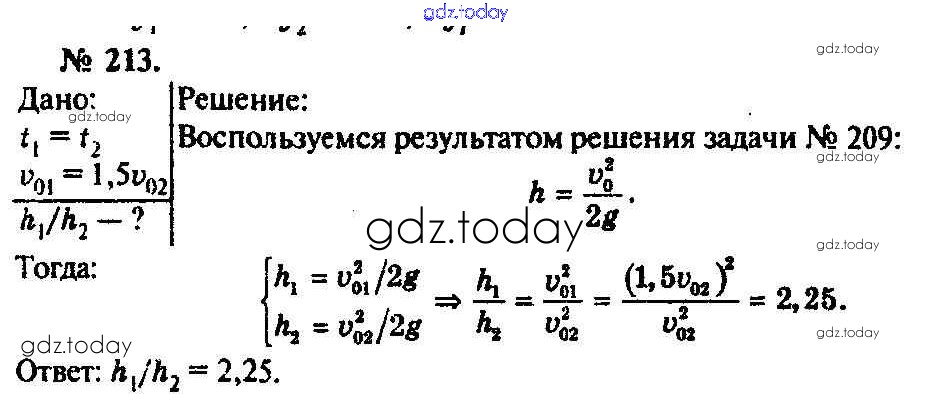 На страницах сайта gdz.today вы найдете учебный и вспомогательный материал, направленный на улучшения знаний школьной программы. ГДЗ - онлайн мир знаний Задачи 213 Задачнику по Физике для 10-11 класса Рымкевич Дрофа УМК 2013