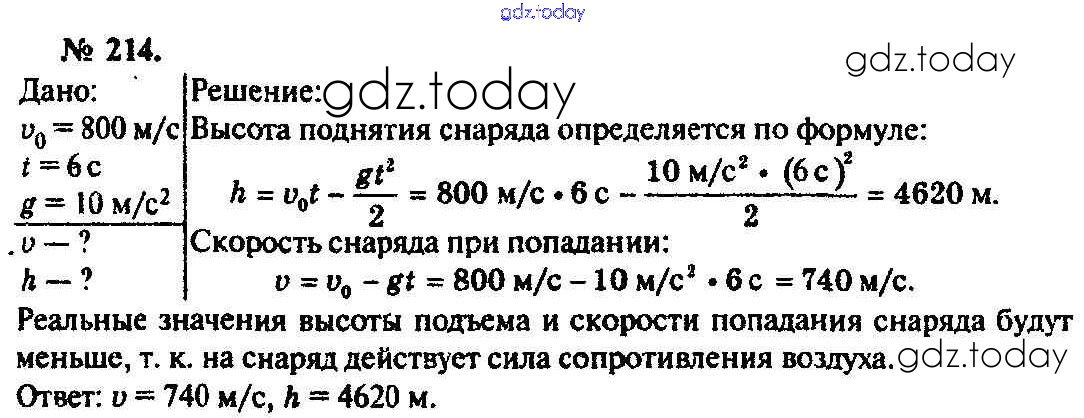 На страницах сайта gdz.today вы найдете учебный и вспомогательный материал, направленный на улучшения знаний школьной программы. ГДЗ - онлайн мир знаний Задачи 214 Задачнику по Физике для 10-11 класса Рымкевич Дрофа УМК 2013