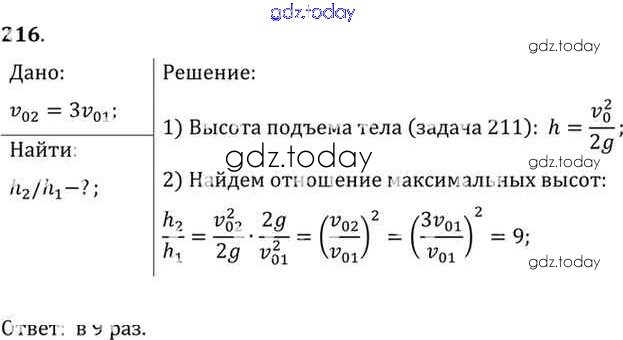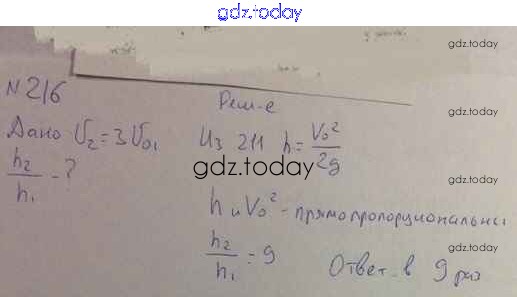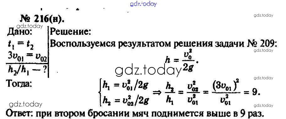 На страницах сайта gdz.today вы найдете учебный и вспомогательный материал, направленный на улучшения знаний школьной программы. ГДЗ - онлайн мир знаний Задачи 216 Задачнику по Физике для 10-11 класса Рымкевич Дрофа УМК 2013