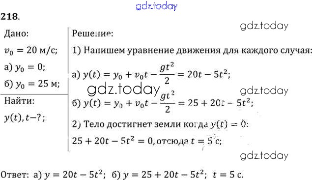 На страницах сайта gdz.today вы найдете учебный и вспомогательный материал, направленный на улучшения знаний школьной программы. ГДЗ - онлайн мир знаний Задачи 218 Задачнику по Физике для 10-11 класса Рымкевич Дрофа УМК 2013