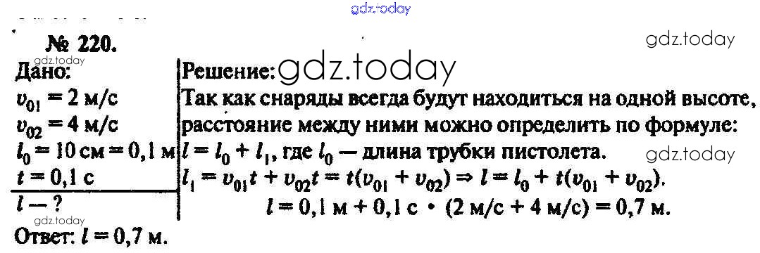 На страницах сайта gdz.today вы найдете учебный и вспомогательный материал, направленный на улучшения знаний школьной программы. ГДЗ - онлайн мир знаний Задачи 220 Задачнику по Физике для 10-11 класса Рымкевич Дрофа УМК 2013