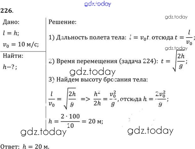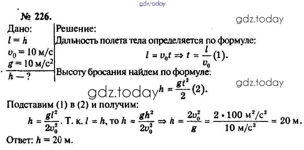 На страницах сайта gdz.today вы найдете учебный и вспомогательный материал, направленный на улучшения знаний школьной программы. ГДЗ - онлайн мир знаний Задачи 226 Задачнику по Физике для 10-11 класса Рымкевич Дрофа УМК 2013