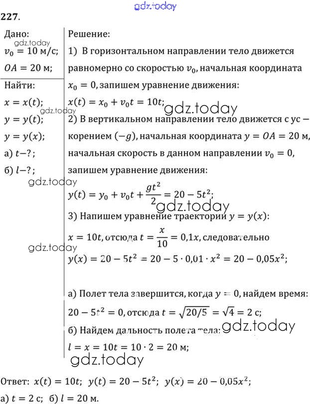 На страницах сайта gdz.today вы найдете учебный и вспомогательный материал, направленный на улучшения знаний школьной программы. ГДЗ - онлайн мир знаний Задачи 227 Задачнику по Физике для 10-11 класса Рымкевич Дрофа УМК 2013