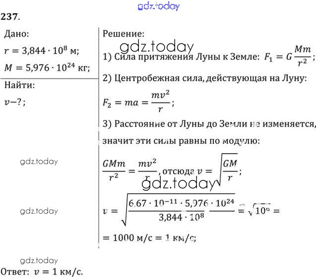 На страницах сайта gdz.today вы найдете учебный и вспомогательный материал, направленный на улучшения знаний школьной программы. ГДЗ - онлайн мир знаний Задачи 237 Задачнику по Физике для 10-11 класса Рымкевич Дрофа УМК 2013