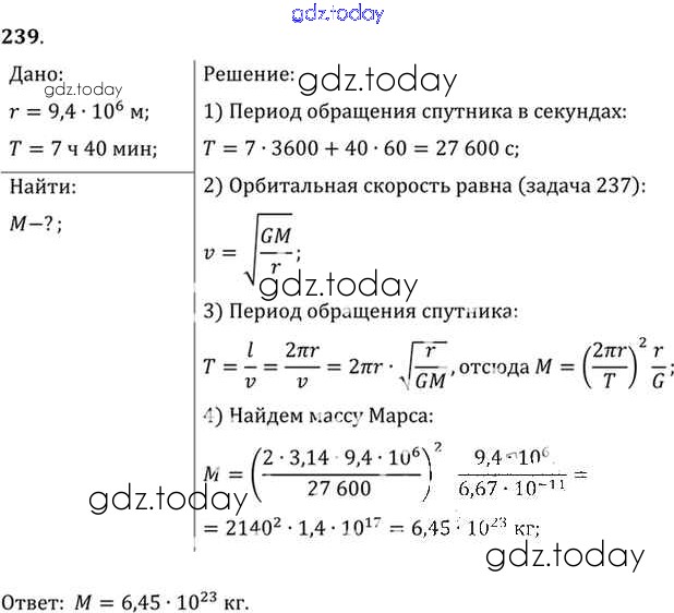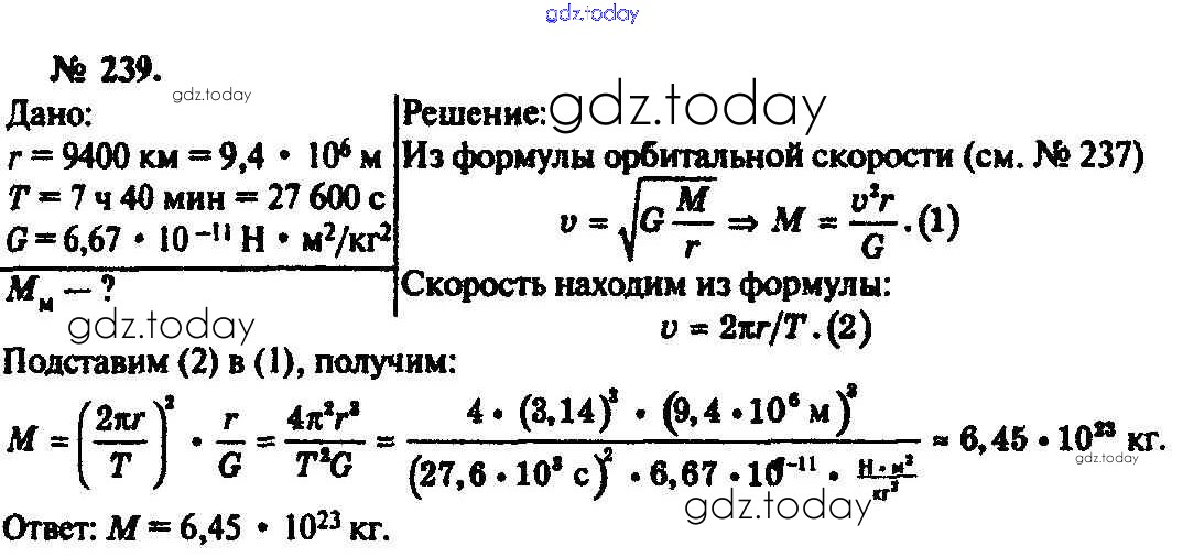 На страницах сайта gdz.today вы найдете учебный и вспомогательный материал, направленный на улучшения знаний школьной программы. ГДЗ - онлайн мир знаний Задачи 239 Задачнику по Физике для 10-11 класса Рымкевич Дрофа УМК 2013