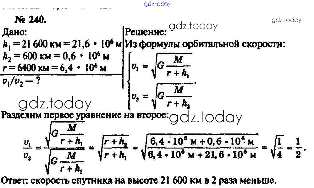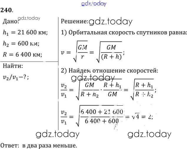 На страницах сайта gdz.today вы найдете учебный и вспомогательный материал, направленный на улучшения знаний школьной программы. ГДЗ - онлайн мир знаний Задачи 240 Задачнику по Физике для 10-11 класса Рымкевич Дрофа УМК 2013