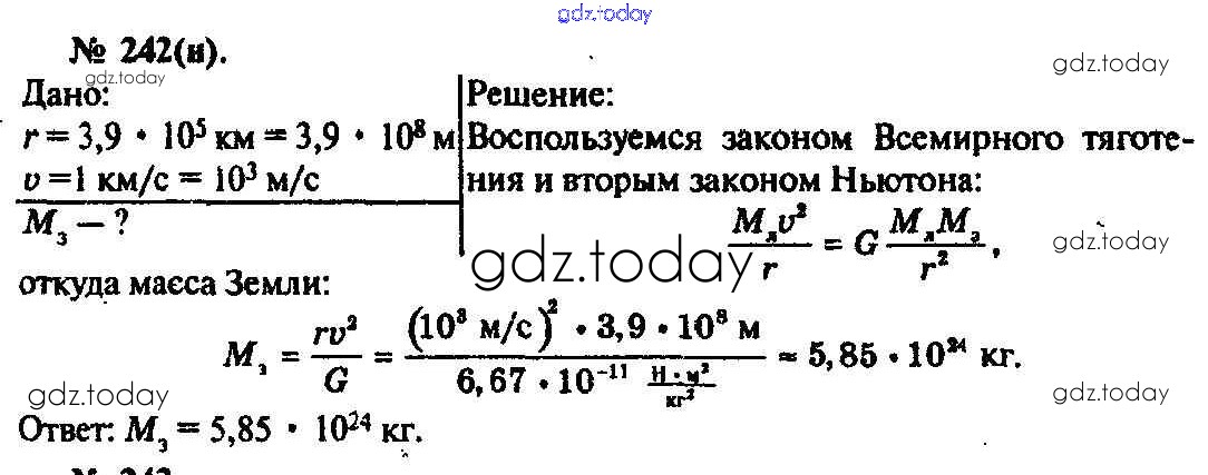На страницах сайта gdz.today вы найдете учебный и вспомогательный материал, направленный на улучшения знаний школьной программы. ГДЗ - онлайн мир знаний Задачи 242 Задачнику по Физике для 10-11 класса Рымкевич Дрофа УМК 2013