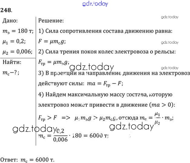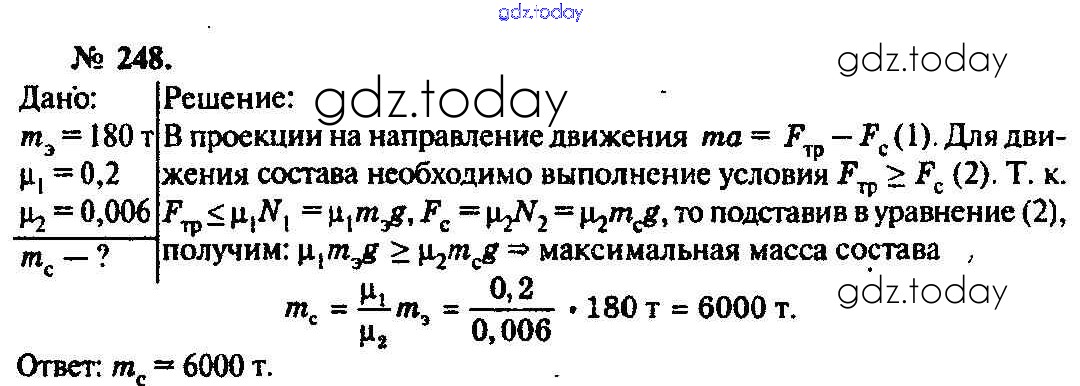 На страницах сайта gdz.today вы найдете учебный и вспомогательный материал, направленный на улучшения знаний школьной программы. ГДЗ - онлайн мир знаний Задачи 248 Задачнику по Физике для 10-11 класса Рымкевич Дрофа УМК 2013
