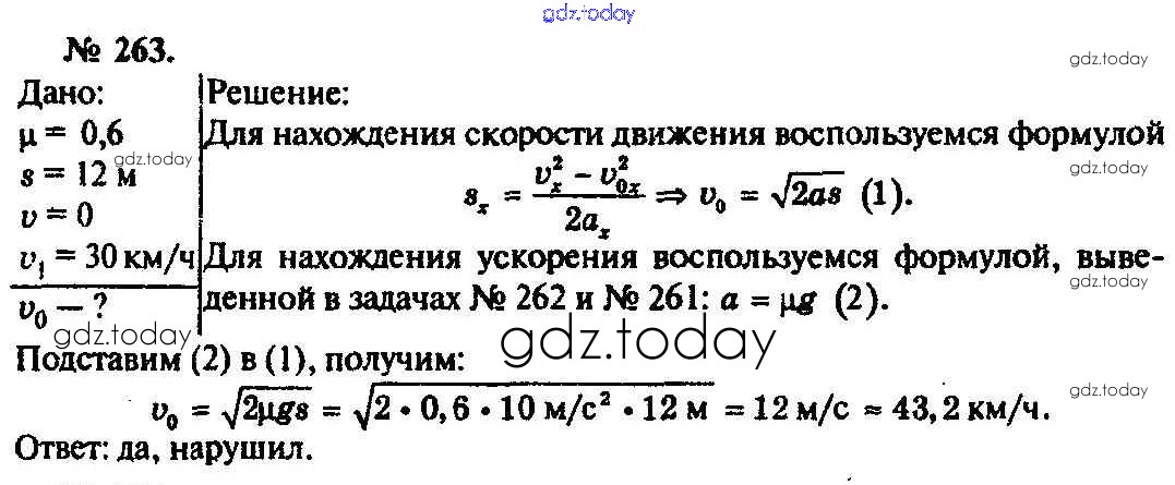 На страницах сайта gdz.today вы найдете учебный и вспомогательный материал, направленный на улучшения знаний школьной программы. ГДЗ - онлайн мир знаний Задачи 263 Задачнику по Физике для 10-11 класса Рымкевич Дрофа УМК 2013