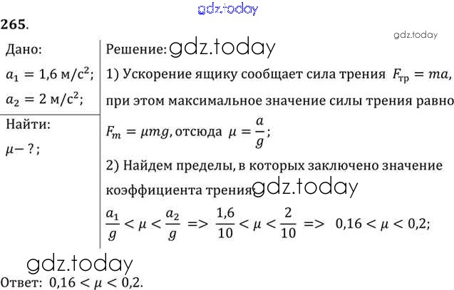 На страницах сайта gdz.today вы найдете учебный и вспомогательный материал, направленный на улучшения знаний школьной программы. ГДЗ - онлайн мир знаний Задачи 265 Задачнику по Физике для 10-11 класса Рымкевич Дрофа УМК 2013