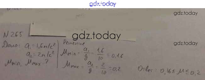 Ответы к Задачи 265 Задачнику по Физике для 10-11 класса Рымкевич Дрофа УМК 2013
