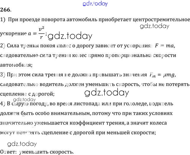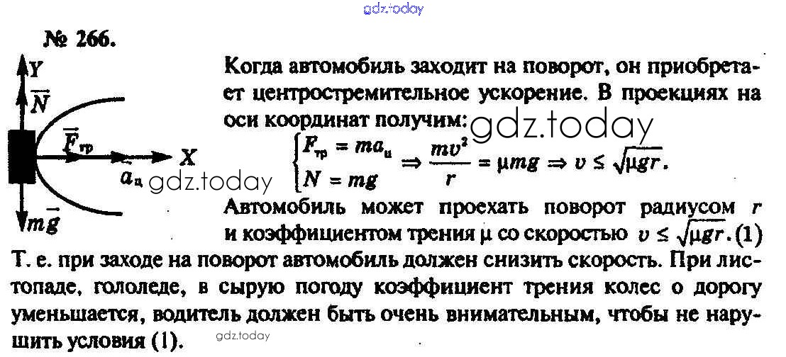 На страницах сайта gdz.today вы найдете учебный и вспомогательный материал, направленный на улучшения знаний школьной программы. ГДЗ - онлайн мир знаний Задачи 266 Задачнику по Физике для 10-11 класса Рымкевич Дрофа УМК 2013