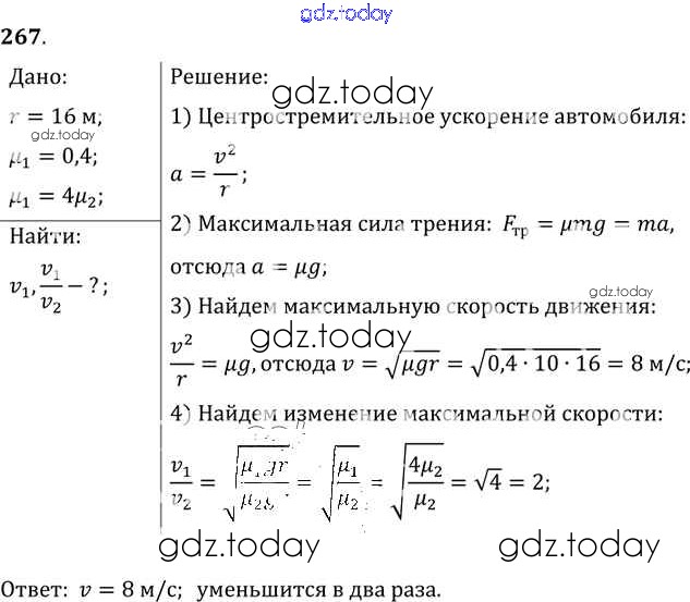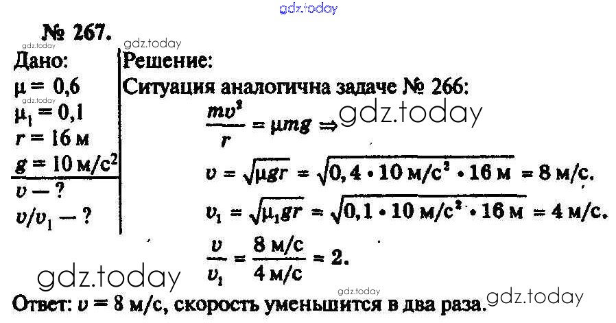 На страницах сайта gdz.today вы найдете учебный и вспомогательный материал, направленный на улучшения знаний школьной программы. ГДЗ - онлайн мир знаний Задачи 267 Задачнику по Физике для 10-11 класса Рымкевич Дрофа УМК 2013