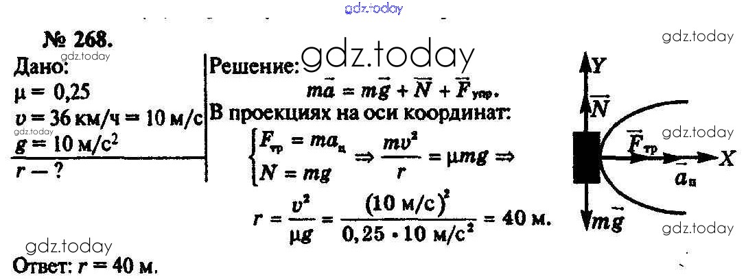 На страницах сайта gdz.today вы найдете учебный и вспомогательный материал, направленный на улучшения знаний школьной программы. ГДЗ - онлайн мир знаний Задачи 268 Задачнику по Физике для 10-11 класса Рымкевич Дрофа УМК 2013
