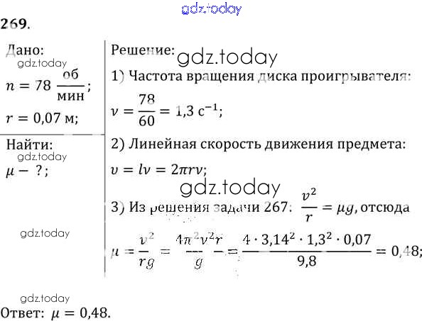 На страницах сайта gdz.today вы найдете учебный и вспомогательный материал, направленный на улучшения знаний школьной программы. ГДЗ - онлайн мир знаний Задачи 269 Задачнику по Физике для 10-11 класса Рымкевич Дрофа УМК 2013