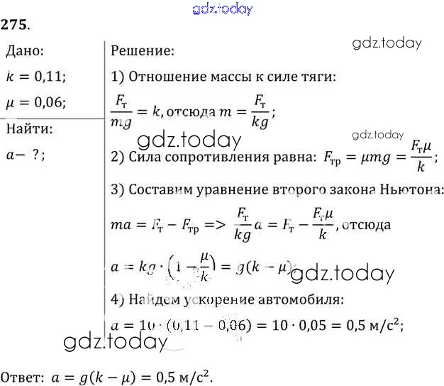 На страницах сайта gdz.today вы найдете учебный и вспомогательный материал, направленный на улучшения знаний школьной программы. ГДЗ - онлайн мир знаний Задачи 275 Задачнику по Физике для 10-11 класса Рымкевич Дрофа УМК 2013