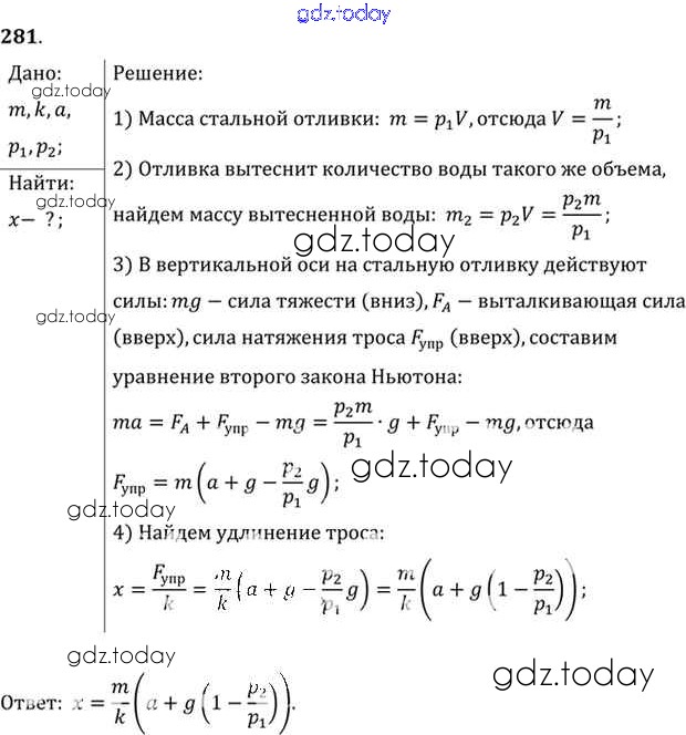 На страницах сайта gdz.today вы найдете учебный и вспомогательный материал, направленный на улучшения знаний школьной программы. ГДЗ - онлайн мир знаний Задачи 281 Задачнику по Физике для 10-11 класса Рымкевич Дрофа УМК 2013