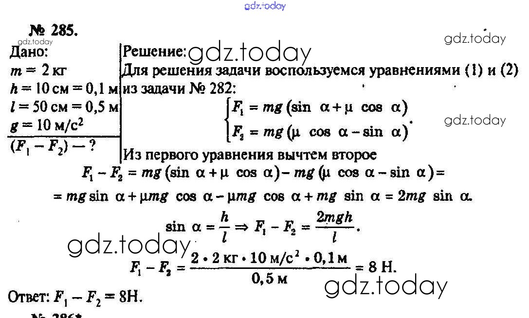 На страницах сайта gdz.today вы найдете учебный и вспомогательный материал, направленный на улучшения знаний школьной программы. ГДЗ - онлайн мир знаний Задачи 285 Задачнику по Физике для 10-11 класса Рымкевич Дрофа УМК 2013