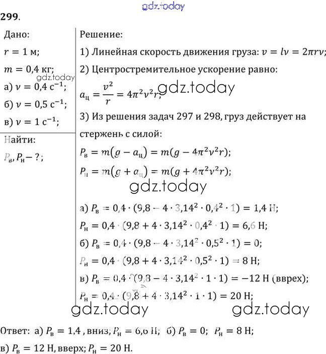 На страницах сайта gdz.today вы найдете учебный и вспомогательный материал, направленный на улучшения знаний школьной программы. ГДЗ - онлайн мир знаний Задачи 299 Задачнику по Физике для 10-11 класса Рымкевич Дрофа УМК 2013