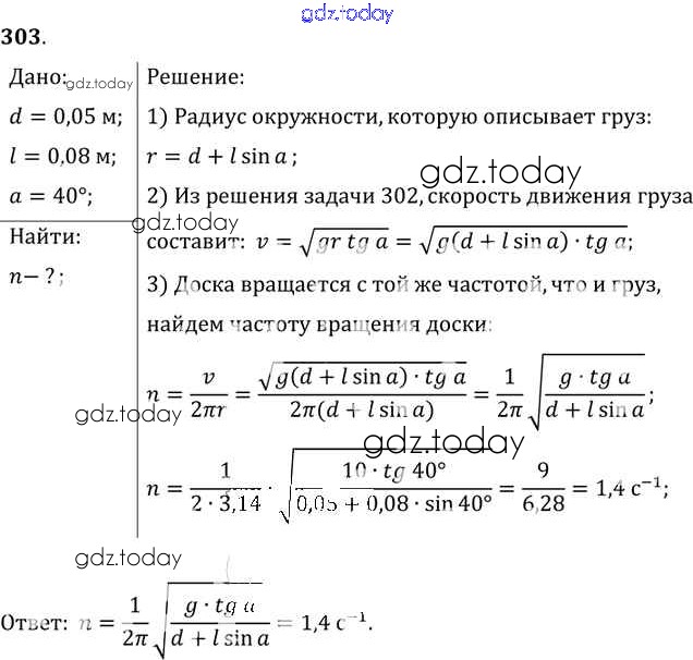 На страницах сайта gdz.today вы найдете учебный и вспомогательный материал, направленный на улучшения знаний школьной программы. ГДЗ - онлайн мир знаний Задачи 303 Задачнику по Физике для 10-11 класса Рымкевич Дрофа УМК 2013