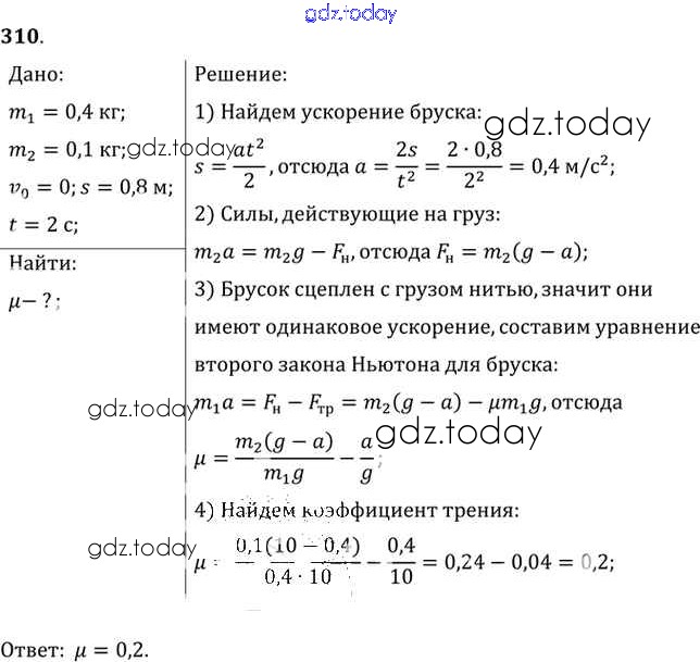 На страницах сайта gdz.today вы найдете учебный и вспомогательный материал, направленный на улучшения знаний школьной программы. ГДЗ - онлайн мир знаний Задачи 310 Задачнику по Физике для 10-11 класса Рымкевич Дрофа УМК 2013