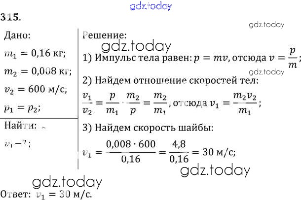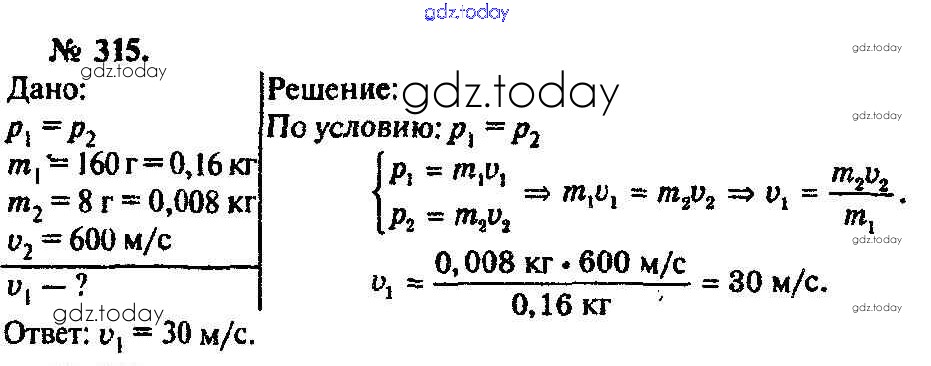 На страницах сайта gdz.today вы найдете учебный и вспомогательный материал, направленный на улучшения знаний школьной программы. ГДЗ - онлайн мир знаний Задачи 315 Задачнику по Физике для 10-11 класса Рымкевич Дрофа УМК 2013