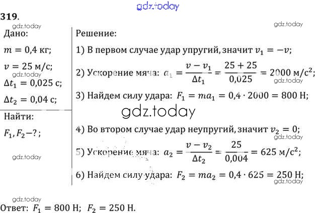 Ответы к Задачи 319 Задачнику по Физике для 10-11 класса Рымкевич Дрофа УМК 2013