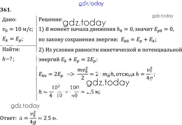 На страницах сайта gdz.today вы найдете учебный и вспомогательный материал, направленный на улучшения знаний школьной программы. ГДЗ - онлайн мир знаний Задачи 361 Задачнику по Физике для 10-11 класса Рымкевич Дрофа УМК 2013