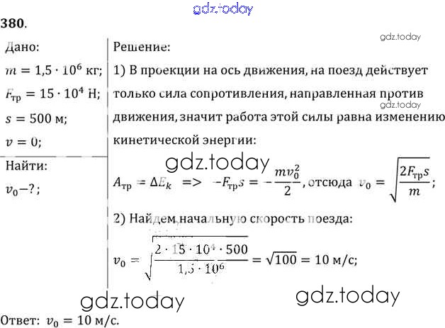 На страницах сайта gdz.today вы найдете учебный и вспомогательный материал, направленный на улучшения знаний школьной программы. ГДЗ - онлайн мир знаний Задачи 380 Задачнику по Физике для 10-11 класса Рымкевич Дрофа УМК 2013
