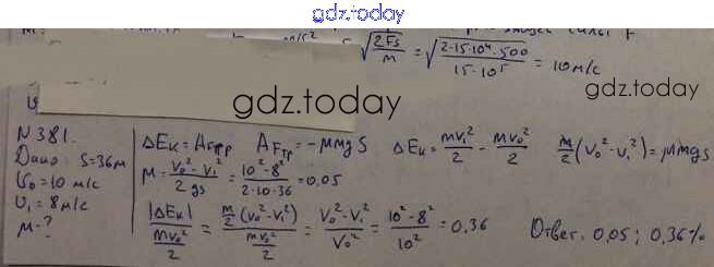 Ответы к Задачи 381 Задачнику по Физике для 10-11 класса Рымкевич Дрофа УМК 2013