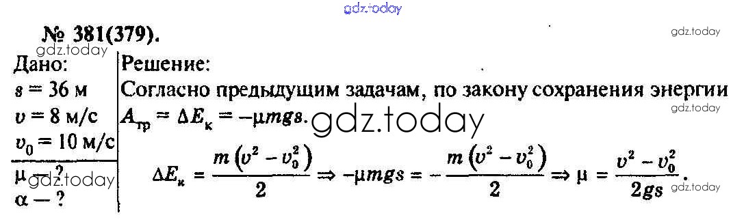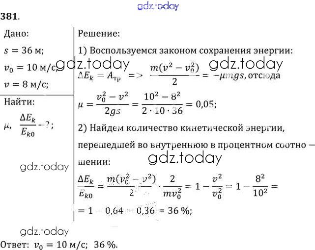 На страницах сайта gdz.today вы найдете учебный и вспомогательный материал, направленный на улучшения знаний школьной программы. ГДЗ - онлайн мир знаний Задачи 381 Задачнику по Физике для 10-11 класса Рымкевич Дрофа УМК 2013