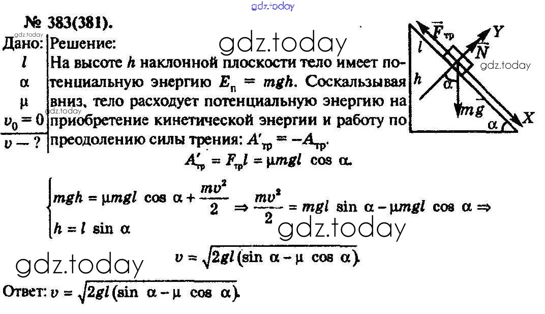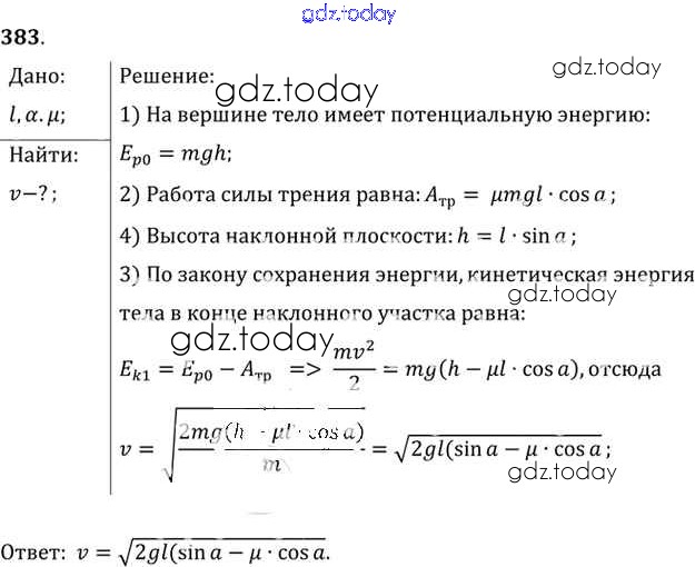 На страницах сайта gdz.today вы найдете учебный и вспомогательный материал, направленный на улучшения знаний школьной программы. ГДЗ - онлайн мир знаний Задачи 383 Задачнику по Физике для 10-11 класса Рымкевич Дрофа УМК 2013