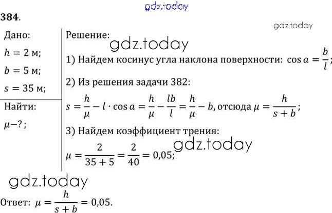 На страницах сайта gdz.today вы найдете учебный и вспомогательный материал, направленный на улучшения знаний школьной программы. ГДЗ - онлайн мир знаний Задачи 384 Задачнику по Физике для 10-11 класса Рымкевич Дрофа УМК 2013