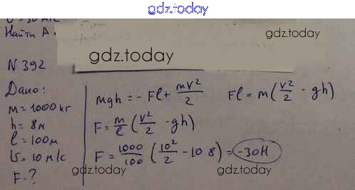 Ответы к Задачи 392 Задачнику по Физике для 10-11 класса Рымкевич Дрофа УМК 2013