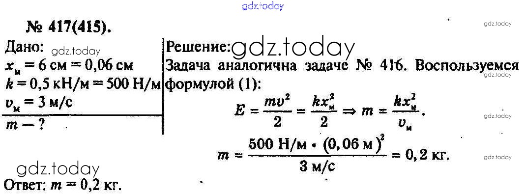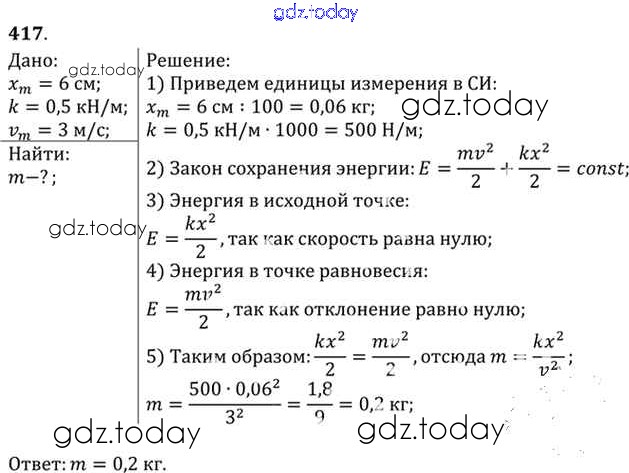 На страницах сайта gdz.today вы найдете учебный и вспомогательный материал, направленный на улучшения знаний школьной программы. ГДЗ - онлайн мир знаний Задачи 417 Задачнику по Физике для 10-11 класса Рымкевич Дрофа УМК 2013
