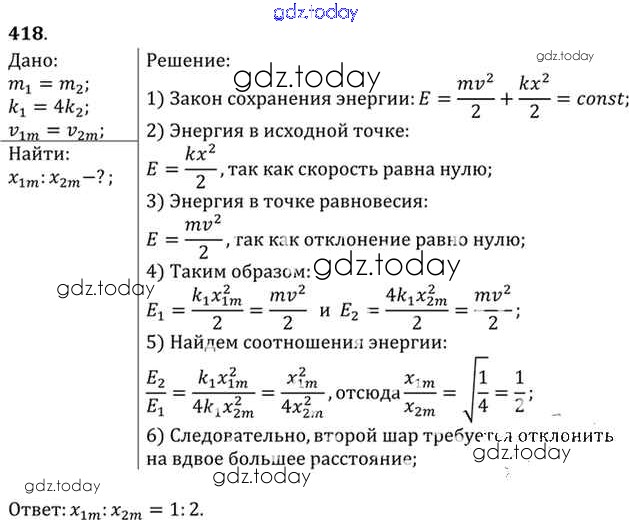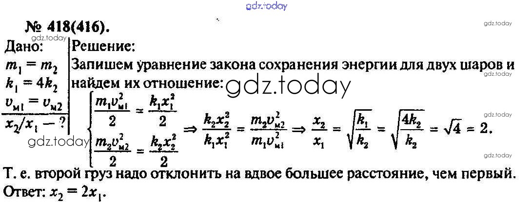 На страницах сайта gdz.today вы найдете учебный и вспомогательный материал, направленный на улучшения знаний школьной программы. ГДЗ - онлайн мир знаний Задачи 418 Задачнику по Физике для 10-11 класса Рымкевич Дрофа УМК 2013