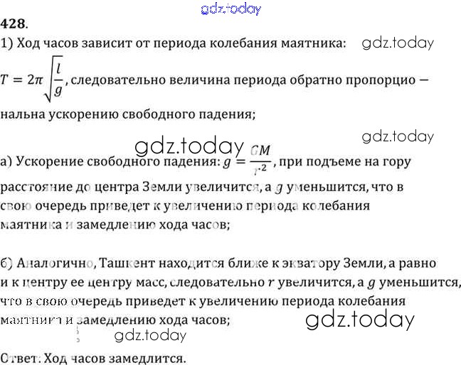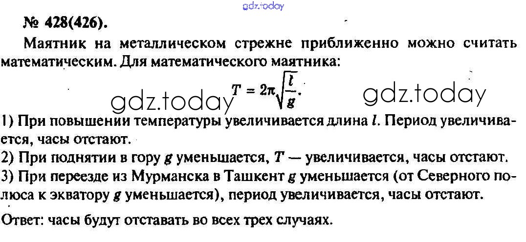 На страницах сайта gdz.today вы найдете учебный и вспомогательный материал, направленный на улучшения знаний школьной программы. ГДЗ - онлайн мир знаний Задачи 428 Задачнику по Физике для 10-11 класса Рымкевич Дрофа УМК 2013